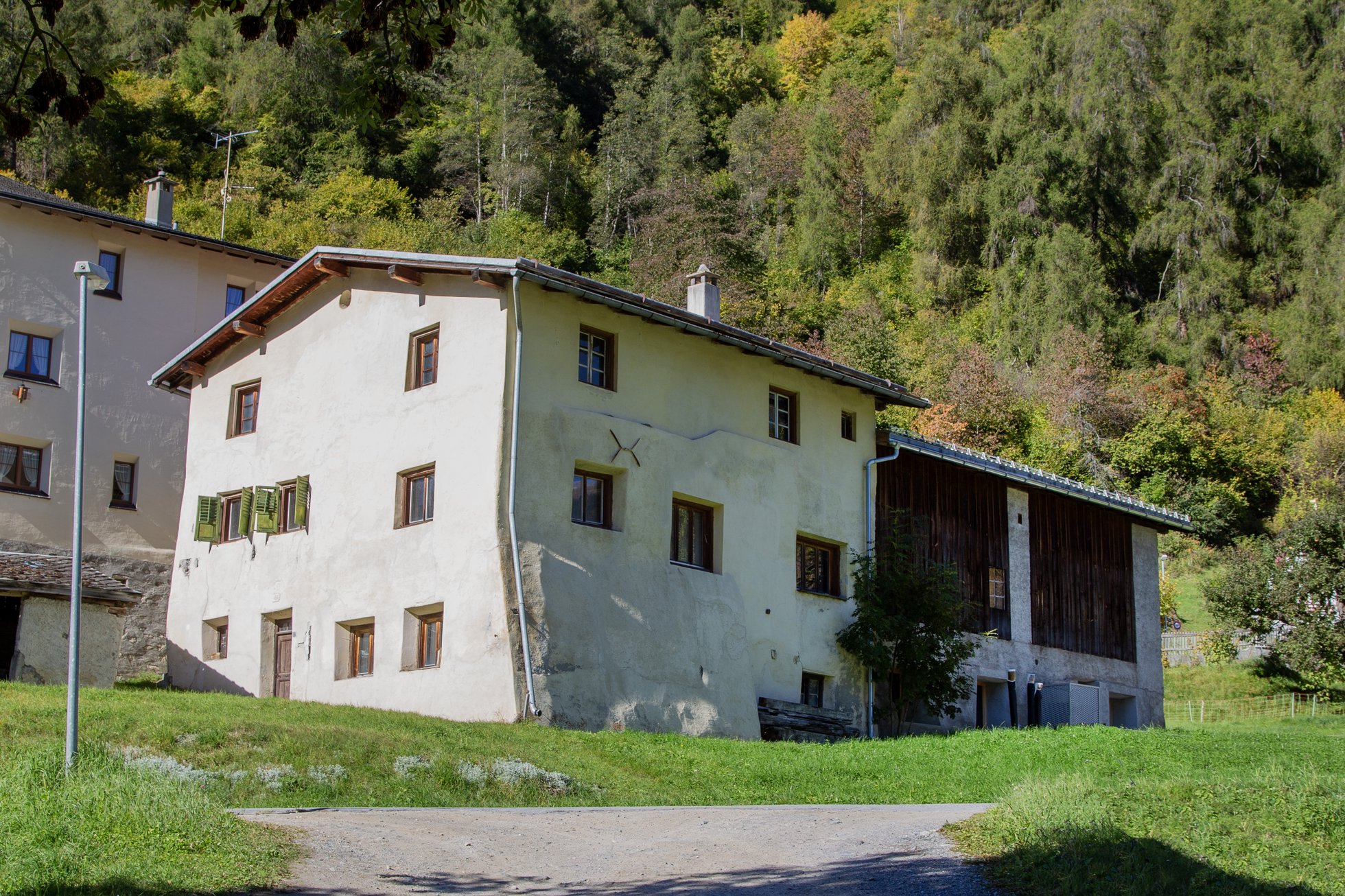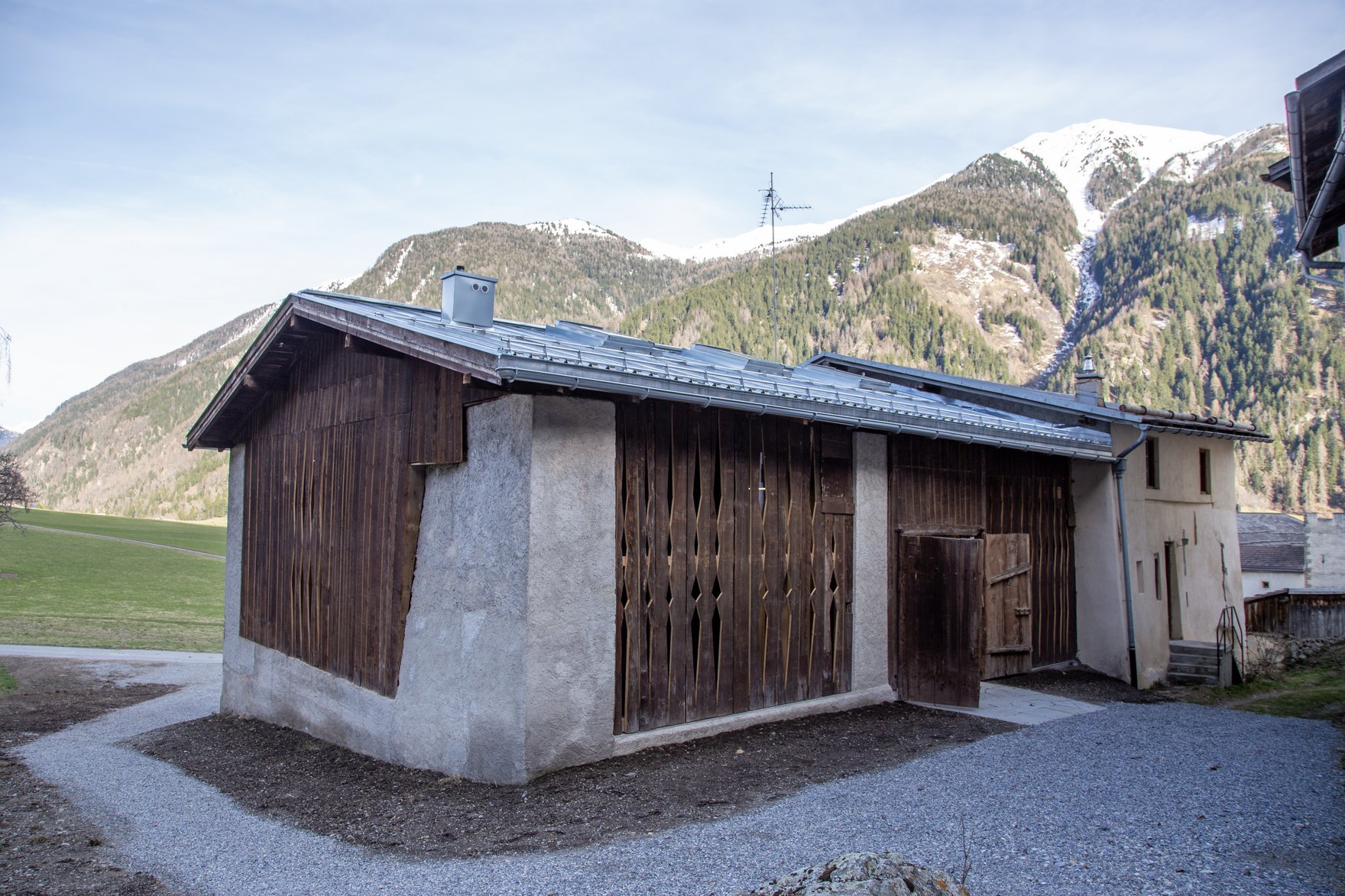 Im Stall der 2023 renovierten Chasa Selm, dem wohl ältesten Hofgebäude der Gegend, entstand hinter historischem Holzbretterkleid ein Komplex aus einem technisch perfekt ausgestatteten Seminar- oder Tagungsraum, einer Werkstätte für das Handwerk im Untergeschoss sowie Büroarbeitsplätzen im Obergeschoss.