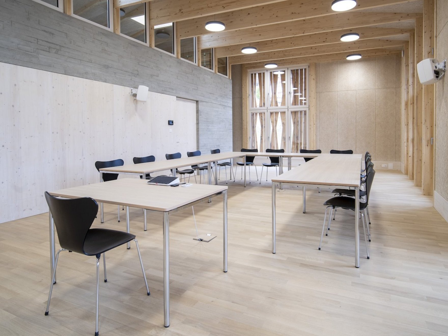 Diese Infrastrukturen könnten sich perfekt für Ihre nächste Veranstaltung eignen. Ob mit Bestuhlung für einen Vortrag mit bis zu 70 Personen oder Ausstattung mit Tischen und Stühlen für bis zu 30 Personen, ob Sie Mikrophone benötigen oder einen Projektor, ob verdunkelt oder im Tageslicht, mit bester Audio-Qualität oder ob Sie Stille für Ihr Event brauchen, der Seminarraum kann dies alles bieten.